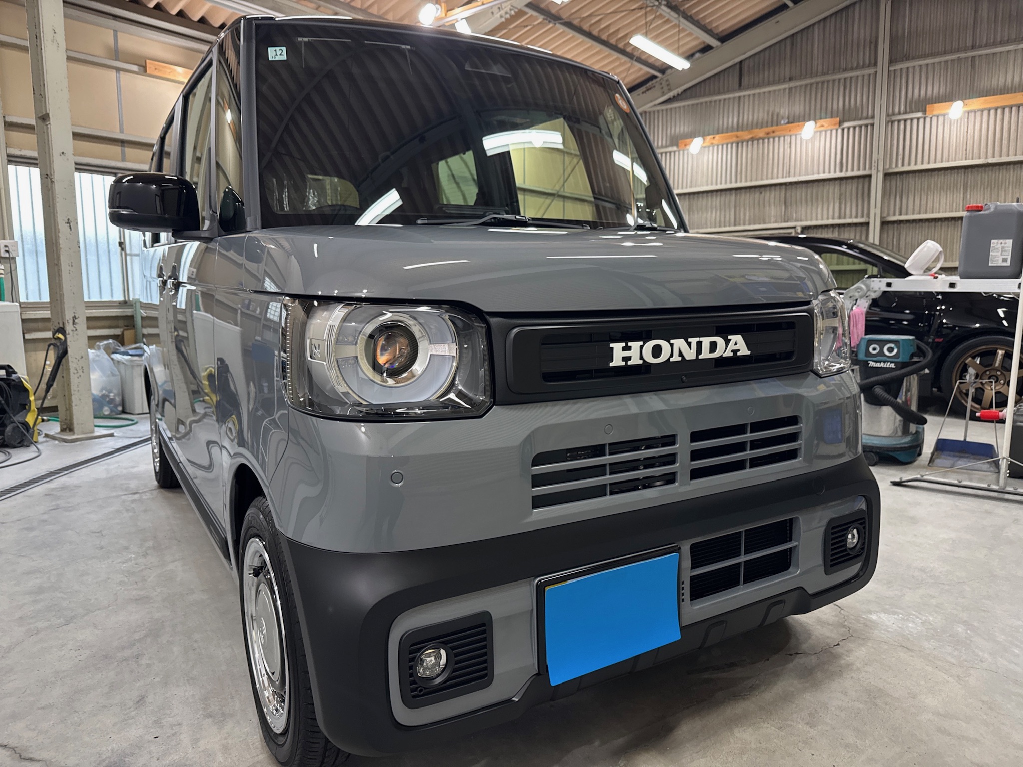 ホンダ N-BOXカスタム 下地処理 ガラスコーティング THE HARD 2層 窓ガラス撥水コーティング(フロント) ヘッドライトコーティング 静岡県焼津市