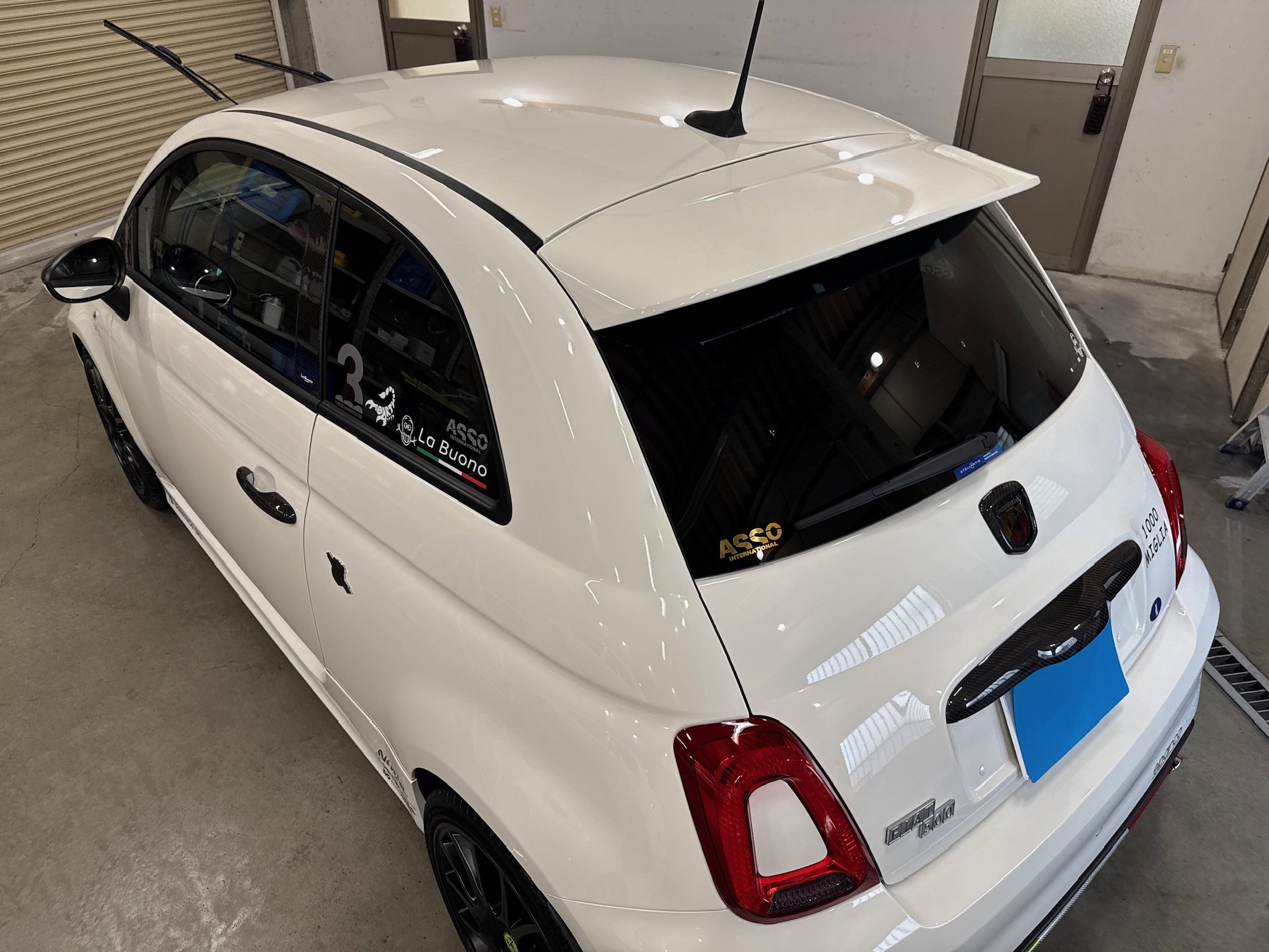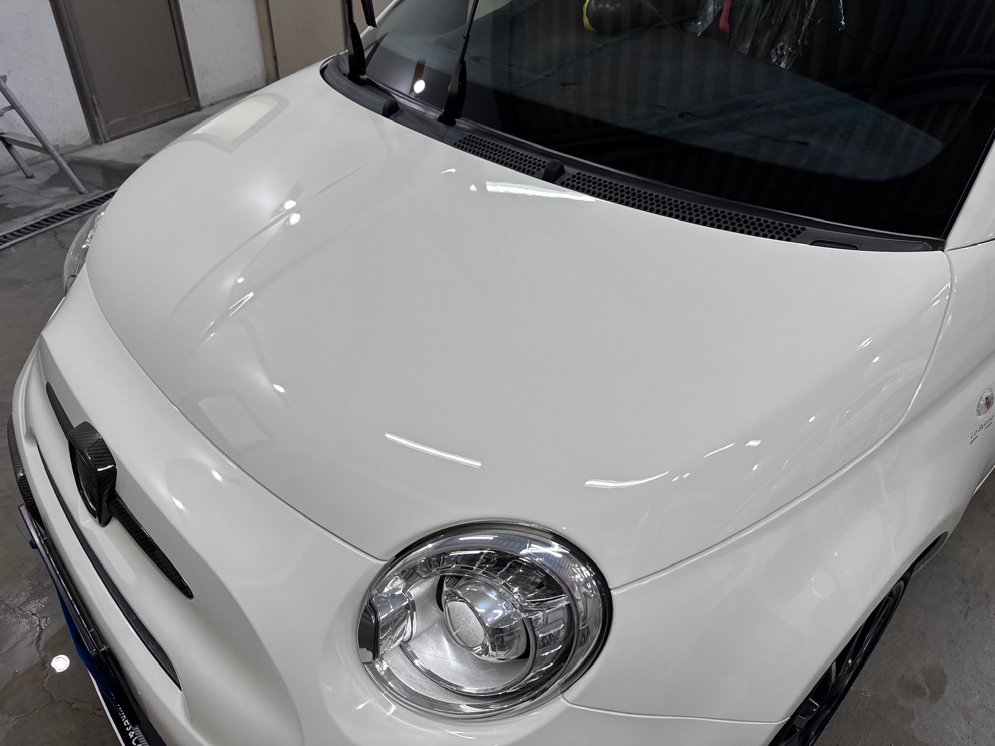 • アバルト 595 下地処理 ガラスコーティング THE HARD 窓ガラス撥水コーティング 静岡県島田市
