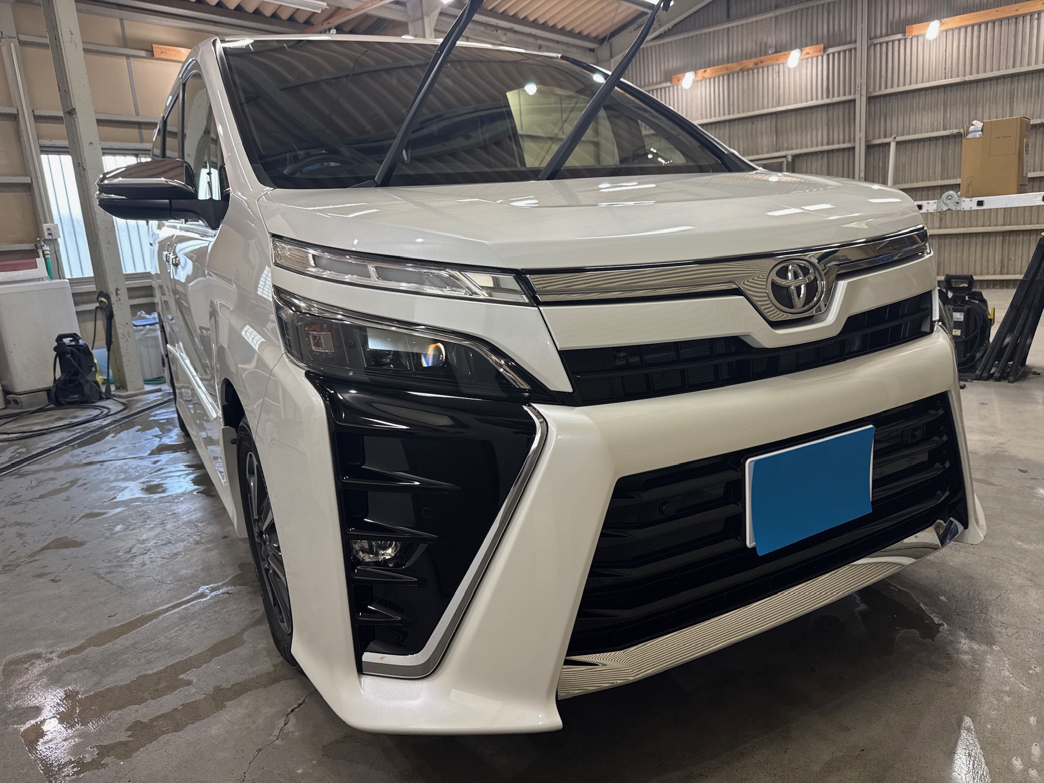 トヨタ ヴォクシー 軽度クリーニング ガラスコーティング THE HARD 窓ガラス撥水コーティング フロント 静岡県焼津市